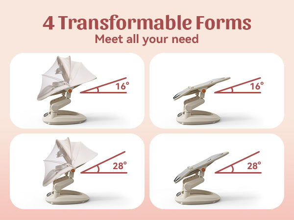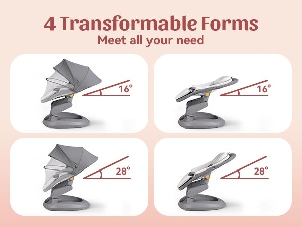 DESIGNED FOR COMFORTABLE REST :The curved seat supports the baby’s body more naturally, avoiding the sunken or stiff sitting positions commonly found in traditional baby swings.
